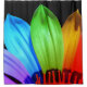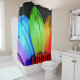 Dies ist ein hübscher Duschvorhang mit einem Bild einer Blume in Regenbogenfarben.