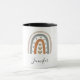 Ein moderner und trendiger, weißer Regenbogen und Herzen in Beige, Grau, Schwarz und Braun. Weißer Hintergrund. Personalisieren und fügen Sie einen Namen, schwarz handgeschriebene Stil Skript.