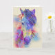 An der Vorderseite dieser Karte befindet sich eine Nahaufnahme eines Pferdes, das blau, lila, rot, rosa und gelb gefärbt ist, und innen befindet sich die wunderschöne Rainbow Bridge for Horses von einem unbekannten Autor, um diejenigen zu beruhigen, die den Verlust ihres geliebten Pferdes beklagen: Am Waldrand, am Fuße eines Hügels, steht eine üppige, grüne Wiese, auf der die Zeit still steht. Wo die Freunde von Mann und Frau laufen, wenn ihre Zeit auf Erden vorbei ist und getan ist. Denn hier, zwischen dieser Welt und der nächsten, ist ein Ort, wo geliebte Kreaturen Erholung finden. Auf diesem goldenen Land warten sie und spielen, bis die Rainbow Bridge eines Tages überquert wird. Sie leiden nicht mehr, in Schmerz oder Trauer, denn hier sind sie ganz, ihr Leben voller Freude. Ihre Gliedmaßen werden wiederhergestellt, ihre Gesundheit erneuert. Ihre Körper haben sich mit Kraft verheilt. Sie trotzen ohne Pflege durch das Gras, bis sie eines Tages jammern und an der Luft schnüffeln. Alle Ohren heben sich nach vorn, die Augen scharf und aufmerksam. Dann bricht plötzlich jemand aus der Herde. Denn nur in dieser Sekunde gibt es keinen Raum für Reue. Wie sie einander sehen... eine Person... ein Pferd. Also rennen sie sich an, diese Freunde aus langer Zeit Die Zeit ihrer Trennung ist endlich vorbei. Die Traurigkeit, die sie während ihrer Zerlegung empfanden, hat sich in jedem Herzen wieder zur Freude gewandelt. Sie schnüffeln mit einer Liebe, die ewig dauern wird. Und dann, nebeneinander, überqueren sie... gemeinsam.