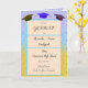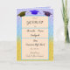 Hinter dem Text steht das Design die Blasen von Champagner. Von oben sind die Farben lila, blau, grün und gelb. Im Inneren der Karte befinden sich drei Hüte und zwei Gläser Champagner.