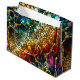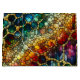 Ein lebendiges, detailliertes Kunstwerk, das einer nahen Ansammlung miteinander verbundener, bunter Zellen oder Buntglas ähnelt.