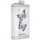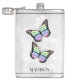 Genießen Sie Ihre Lieblings-alkoholische Getränke jederzeit mit einem Rainbow Butterfly Floral Vinyl Wrapped Flask. Das Flasendesign besticht durch ein Paar lebendiger Schmetterlinge, die sich auf einer weißen, blumengeschmückten Weinrebe mit hellgrauem Grunge-Hintergrund ruhen. Auch zusätzliche Geschenkartikel sind in diesem Design erhältlich.