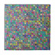 Ce produit est fabriqué à partir d'une mosaïque multicolore texturée carreaux carrés motif dans les couleurs arc-en-ciel et les tons vifs de vert et bleu, avec une touche de jaune vif qui donne à ce design unique une atmosphère festive et carnavalesque.
