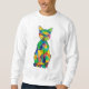 Ein Bild einer Regenbogenkatze. Die Katze ist gemustert wie eine Tortoisshölle, nur in viel mehr Farben. Geeignet nur für helle Bekleidungsfarben.