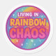 A bold round sticker bursting with rainbow colors and holographic sparkle, featuring the phrase “Living in Rainbow Chaos.” Perfect for laptops, notebooks, and water bottles — a vibrant reminder to embrace the fun side of life.