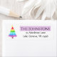Hübscher Regenbogen Weihnachtsbaum mit lila Akzenten und niedlichem Schriftart.