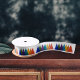 Ein fröhliches und buntes Weihnachtsbänder mit einem Muster regenbogenfarbener Weihnachtsbäume in allen Farben, darunter blau, grün, lila, gelb, rot und orange, um Ihren Geschenken in dieser Ferienzeit eine fröhliche, festliche Touch zu verleihen.