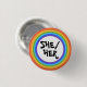 Knopfdruck in einem klassischen und modernen Schriftart mit einem handgezeichnet Regenbogenkreis. Dekorieren Sie Ihre Kleidung mit diesem schönen künstlerischen Knopf.