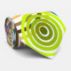 Diese Krawatte hat ein modernes Design aus einer Reihe von Kreisen in Retrofarben.