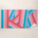 Dieses Strandtuch hat ein gestreiftes Design aus fünf Streifen, die sich kreuz und quer durch das Design Blau, Rosa, Pfirsich und Korallen ziehen. Wenn Ihnen das Design gefällt, aber andere Farben bevorzugen, dann schreiben Sie mir.