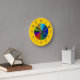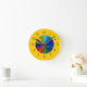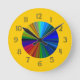 Wenn Sie Liebe Farbe, dann ist dies eine Mauer-Uhr! Ein lebendiger Kreis von Regenbogenfarben, die in der Mitte der Uhr explodieren, und um den äußeren Rand ist ein ebenso lebendiger, warmer Senfgelb! Zahlenangaben sind einfach zu lesen und haben einen metallischen Look.