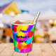 Helle und lebendige personalisierte Party Becher in jeder Farbe des Regenbogens. Ideal für Party, Feiern und Feste. Bring die Sonne!