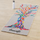 Diese Yogamatte in lebhaften Farben ist mit einem Mosaikbaum in Regenbogenfarben auf grauem Hintergrund dekoriert. Es steht Namaste, ist aber leicht anpassbar. Original Mosaik ©️ Michele Davies.