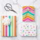 Rainbow Confetti Streifen farbenfrohe Retro Geschenkpapier Set