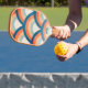 Retro Regenbogenpaddel in orangen und blauen Farben. Doppelseitig und personalisiert mit einem Namen oder beliebigem Text auf einer Seite mit einem coolen und trendigen Schriftart.