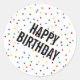 Rainbow Dots Happy Birthday Pattern Classic Round Aufkleber - Diese Aufkleber sind mit dem Muster der Polka-Punkte im Regenbogen und den Worten "Happy Birthday" im fett gedruckten Text versehen.