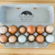 Moderne Briefmarke für den Cartoon von Eiern, die für alle Eiertypen bestimmt ist: Hühnereier, Enteneier, Wachteleier, Gänseeier und vieles mehr.