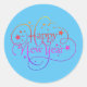 Blue Rainbow Modern Elegant Happy New Year Script, Classic Round Sticker Great für feiern & Party's.