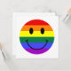 das Gesicht gegen die Streifen der Regenbogenflagge.