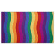 Wavy Line Regenbogenfarben von Rot, lila, Violett, Blau, Orange, Gelb und Grün über einem subtil gemusterten Hintergrund.