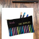 Ein schwarzer Beutel mit einigen bunten Filzstiften, um Ihre Stifte, Stifte und kleinen Herrscher zu speichern. Personalisieren Sie es mit einem Namen. © ArianeC Illustrations-Alle Rechte vorbehalten