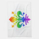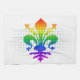 Ein Regenbogen-Fleur-de-lis mit einem Fleur-de-lis-Hintergrundmuster.