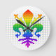 Ein Regenbogen-Fleur-de-lis mit einem Fleur-de-lis-Hintergrundmuster.