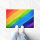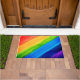 Rainbow Doormat. Diese pulsierende Türmchen ist mit Aquarellstreifen in Regenbogenfarben dekoriert. Original Wasserfarbe © Michele Davies.