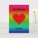 Romantik und Glück zusammen, das ist der Sinn von echter Liebe. Personalisieren Sie diese Karte mit dem Namen eines Spezialisten. Die Vorderseite zeigt ein großes rotes, lächelndes Herz mit zwei Paaren kleinerer roter Herzen auf einem regenbogenfarbenen Hintergrund. Der Text ist Happy Birthday - oder Sie können dies nach Bedarf anpassen. Die Karte enthält die Nachricht "Sie machen mein Herz lächeln", die auch für Ihre eigene spezielle Nachricht bearbeitet werden kann.