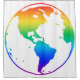 Der Duschvorhang hat ein grafisches Nachweisbild des Planeten Erde mit dem Kontinent Nordamerika, Südamerika, Afrika und Europa. Sie sitzen in Regenbogenfarben, beginnend mit Rot im Nord-Grün in der Mitte und Blau und lila im Süden. Es ist eine bemerkenswerte Ergänzung zu jedem Badezimmer, will aber, eine Aussage zu machen. Der Hintergrund ist weiß.