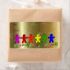 Ein Regenbogen von Lebkuchenbewohnern wünscht allen einen glücklichen Urlaub. Farbenfrohe und fröhliche Gleichheitsbotschaft im Geiste der Weihnachtszeit.