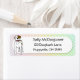 Einzigartige American Bulldog Adressetiketten haben eine Cartoon Hunde-Rasse auf der links, und Ihre personalisierten Informationen auf der rechten Seite. Der Hintergrund ist ein pastellfarbener Regenbogengingham.