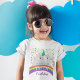 Niedliches, personalisiertes Mädchen Geburtstagsparty T - Shirt mit individuellem Alter, Regenbogen, bunten Sternen und Kawaii Katzeneinhorn.