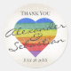 Diese individuellen Aufkleber verfügen über einen Elfenbeinhintergrund. In der Mitte erscheint ein Regenbogen-Stil, Imitate Glitzer-Herz. Zwei Beispielnamen werden in einem eleganten grauen Schriftart über das Herz gedruckt. Sie können diese Aufkleber so gestalten, dass sie Ihren eigenen Namen oder Ihre eigene Nachricht oder ein individuelles Angebot enthalten. "Danke" wird in einem ausgefeilten grauen Schriftart über dem Regenbogenherz gedruckt und ein Musterdatum wird unten in einem passenden grauen Schriftart gedruckt. Sie können das Datum auch so gestalten, dass Sie Ihren eigenen Hochzeitstag, das Datum der Verlobung oder einen anderen besondere Anlass angeben können.