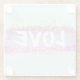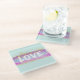 Schöner türkisfarbener Hintergrund mit Pinselstrich von lila und rosa mit goldfarbenem Glitzer und benutzerdefiniertem Skript "Liebe". Mit diesem bunten Untersetzer dekorieren Sie Ihren Raum, sodass Sie ihn voll genießen und Unterhaltung so viel Spaß machen können.