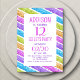 Sind Sie bereit, etwas Glanz und Farbe in ihre Geburtstagsfeier zu spinnen? Dieses Geburtstagsdesign ist perfekt für den besonderen Tag Ihres Mädchens, entworfen mit dem ganzen Spaß, den sie verdient! Mit einer lebendigen Kulisse glitzernder Regenbogenstreifen ist diese Einladung der Inbegriff niedlicher, hübscher und kühner Regenbogenstreifen! Ob sie 5 oder 25 wird, unsere Einladung ist auf Kinder, Jugendliche und junge Erwachsene gleichermaßen zugeschnitten! Hell, lustig und farbenfroh, wird dieses moderne Design jeden erfassen. Der rosa und lila Text verleiht der Bühne einen zusätzlichen Pop an Spannung und Freude für eine Geburtstagsparty!