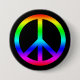 Rainbow Gradient Peace Symbol Sign On Black Button