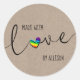 Rainbow Heart Script handgeschrieben mit Liebe Runder Aufkleber