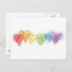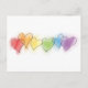 Eine Reihe von regenbogenfarbenen Herzen in Aquarelltönen.