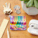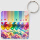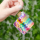 Dieser Schlüsselanhänger hat ein Regenbogenherz-Design.