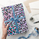 Stilvolle Rainbow Iridescent Gradient and Leopard Spots Muster mit Lila, rosa und blauen Farben
