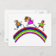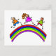 Niedlicher Cartoon skurrile Illustration einer Gruppe glücklicher und vielfältiger kleiner Strichmännchen Mädchen und Jungen, die über dem Gipfel eines Regenbogens rennen. Einfach anpassen und Ihre eigene Hintergrundfarbe auswählen oder Text hinzufügen. Bilder auf verschiedenen Geschenken und Produkten erhältlich.