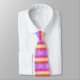 Krawatte mit hellen und freundlichen horizontalen Streifen in Rosa, Gelb und lila auf einem abstrakten Wabenhintergrund.