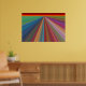 Dieses Blickfang-Poster ist ein digitales Bild einer abstrakten Landschaft, die aus verworrenen Linien besteht, fast wie Straßen, die zu einem roten und goldenen Horizont führen. Die Linien schmalen sich und konvergieren sich über den fernen Horizont, was einen Eindruck von Reisen. Sie sind in jeder Farbe des Regenbogens, Rot, Orange, Grün, Blau, lila, Rosa und Gold. Das Poster würde in jedem Raum eine starke und dennoch harmonische Farbaussage abgeben.