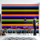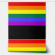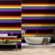 Dieses benutzerdefinierte Hintergrundbild zeigt ein LGBTQ-Stolperflaggen auf schwarzem Hintergrund. Das gestreifte Muster ist über die Tapete gefliest, wobei die Regenbogenfarben der Stolzflagge rot, orange, gelb, grün, blau und lila sind.