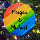 Dieses personalisierte Weihnachtsschmuck ist mit einer lebendigen Wasserfarbe aus Regenbogenstreifen dekoriert. Passen Sie es an, indem Sie die Namen ändern.