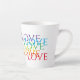 Das Design dieser RAINBOW-LIEBE ist das Wort "LIEBE", in Regenbogenfarben, sechsmal wiederholt, überlagert in einer lockeren Art und Weise. * Andere Tasse und passende Produkte sind in der Kategorie COLORS meines Shops. ** Wenn Sie dieses Design auf einen anderen Produkttyp, eine andere Form oder Größe übertragen möchten, Karo bitte zuerst in meinem Shop, um zu sehen, ob ich eines bereits fertig habe, denn ich habe mich daran geklammert, um das Design genau richtig zu machen, und es wird Ihnen die Mühe gerettet. Manchmal gehen Designs in Ordnung, manchmal tun sie es nicht. Nur fyi.