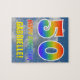 Dieses sehenswerte, lebendige und lustige Puzzle-Design zum Geburtstag zeichnet sich durch einen blauen Himmel mit Wolkenmuster-Hintergrund, eine große Anzahl von "50" und "HAPPY BIRTHDAY" aus, die beide ein buntes Regenbogenspektrum inspiriert haben, und einen anpassbaren Namen. Ein buntes, kümmernd und bearbeitbares Geburtstagsrätsel wie dieses könnte eine lustige Art sein, Geburtstagswünsche jemandem zu senden, der seinen 50. Geburtstag feiert. [~Z0000375]
