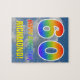 Dieses aufregende, lustige und auffällige, zum Geburtstag bezogene Puzzle-Design weist einen wolkig blauen Himmelsmuster-Hintergrund auf, eine große Zahl "60" und "HAPPY BIRTHDAY", beide mit einem bunten Regenbogenspektrum inspirierten Farbverlauf und einem individuelle Name. Ein gekümmert, bunter und bearbeitbares Geburtstagsrätsel wie dieses könnte eine lustige Art sein, einen Gruß zum Feiern des sechzigsten Geburtstages von jemandem zu verschicken. [~Z0000375]