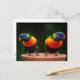 Rainbow Lorikeet Parrots Behielt in Touch mit Zazzle benutzerdefinierten Postkarten! Fügen Sie Ihr Lieblingsbild einer leeren Postkarte hinzu oder sagen Sie "hi" mit einem bereits existierenden Design. Rett Papier und schicke eine Notiz, ohne Umschläge zu verschwenden! 4.25" x 5.6" (Porträt) oder 5.6" x 4.25" (Landschaft). Gedruckt auf ultra-schwerem (120 lb.) Kartenmaterial mit glattem Finish. Keine Mindestbestellung. Spezielle Briefmarke für eine Poststadium! Briefsendung Die Karte kostet $0,34
